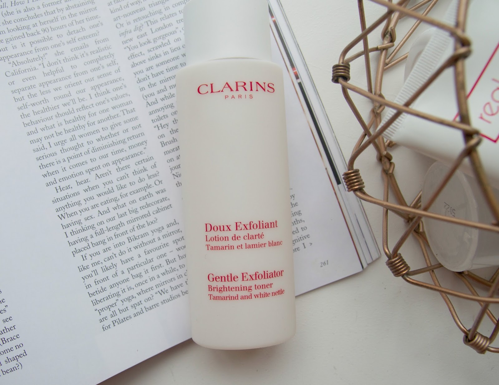 Toner:Clarins Gentle Exfoliating Toner: I can't rave about this product enough, together with the Oskia cleanser I have noticed an immense difference in my skin. It appears to be a more brighter, clearer and fades pigmentation. Packed with potent glycolic, salicylic and tartaric acids to exfoliate, brighten and smooth the skin. I have pretty sensitive skin and I didn't find that my skin reacted in an adverse way to this product. I honestly couldn't recommend this product more, you definitely notice a difference within a week of incorporating it into your skincare routine.